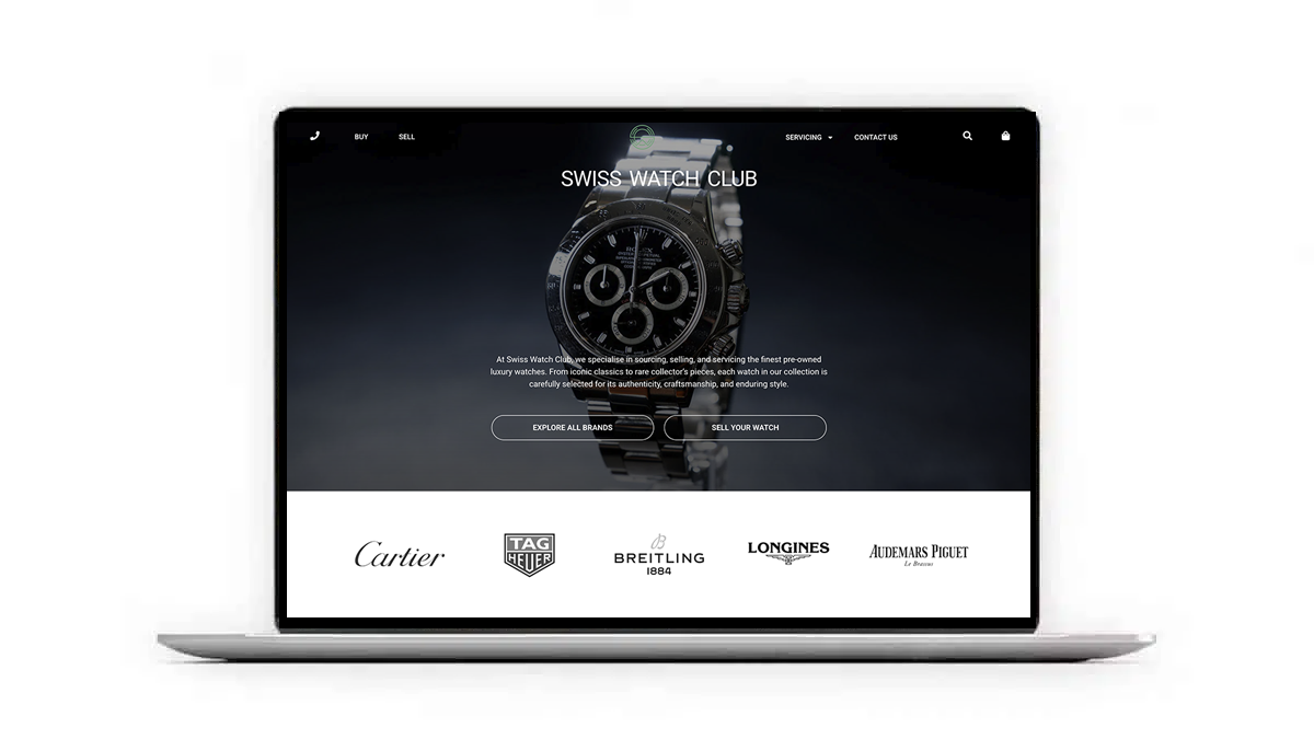 The new design places Swiss Watch Club’s curated collection and expert services front and centre, helping users easily browse products, understand value propositions, and engage with the brand with confidence.